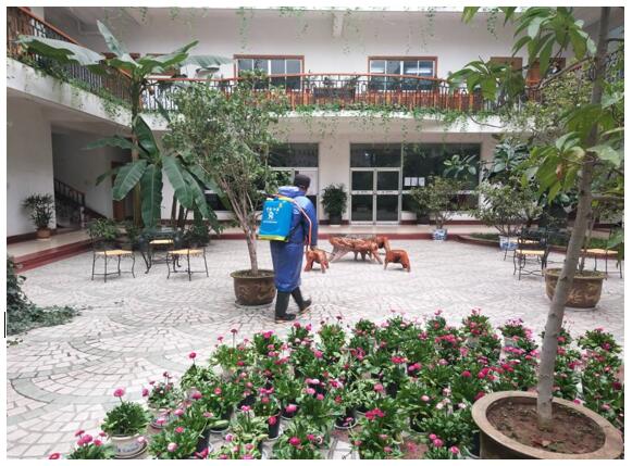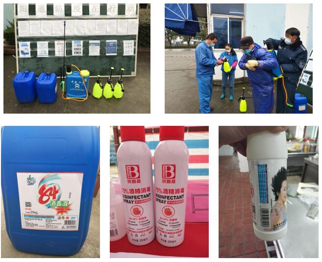 4、每個場所配備一個專用消毒器材,張貼標簽,由門衛統一配置好,專人領用進行消毒;消毒液用途劃分明確;